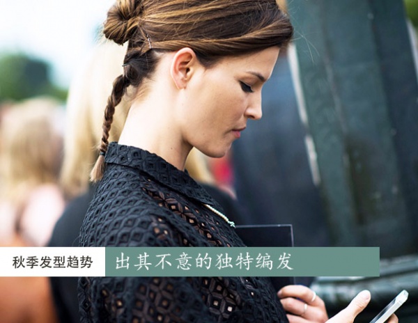 在纽约时装周上,这位模特出身的时尚博主以脑后脖子处的一条小辫子发型,让街拍摄影师们的镜头追逐,不过她用一个拧转的发髻搭配这条小麻花辫,一切看起来棒极了。