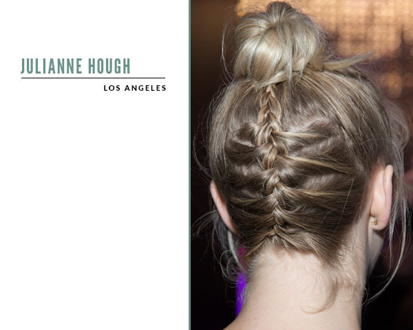 Hough的发型结合法式编发和发髻,是今年夏天最热门的编发方法。