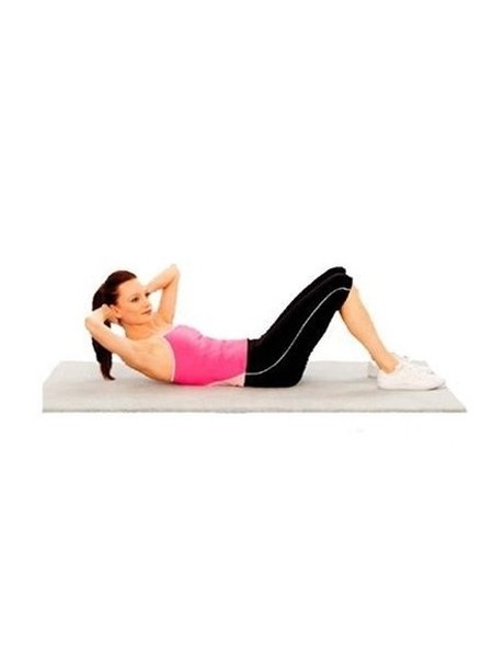 仰卧,背部着地,双脚分开一小段距离,膝盖弯曲,脚掌完全着地,大腿面撑直,双手拖住头部后方,并慢慢抬起肩膀离地,同时微微扭动面部偏向右侧。