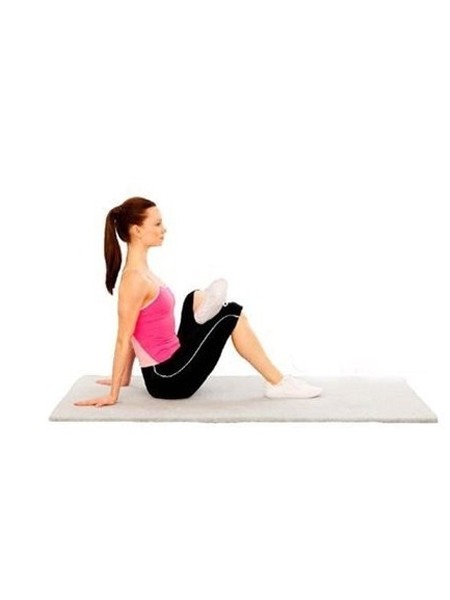 臀部着地,双腿弯曲,脚掌完全着地,双臂撑在背部后方,手掌着地,背部微微后倾,左脚抬离地板,并置于右膝盖上方,尽量撑直左腿,左膝盖尽量压低,维持15秒后,可换另一只脚重复做。