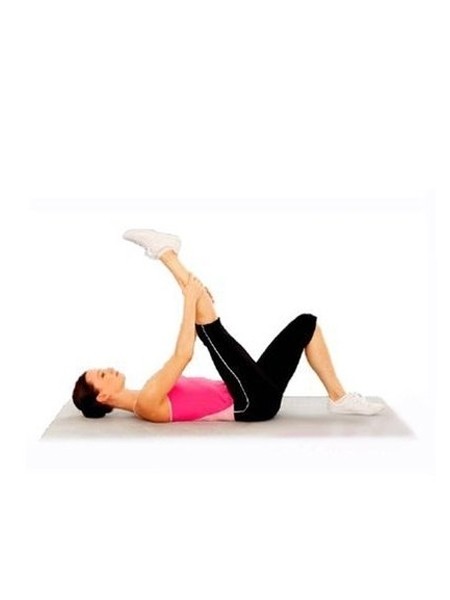 仰卧,背部着地,左腿弯曲撑地,右腿伸直抬离地板,双手握在右小腿处,撑紧右腿,并尽量抬高,维持15秒后,可换另一只脚重复做。