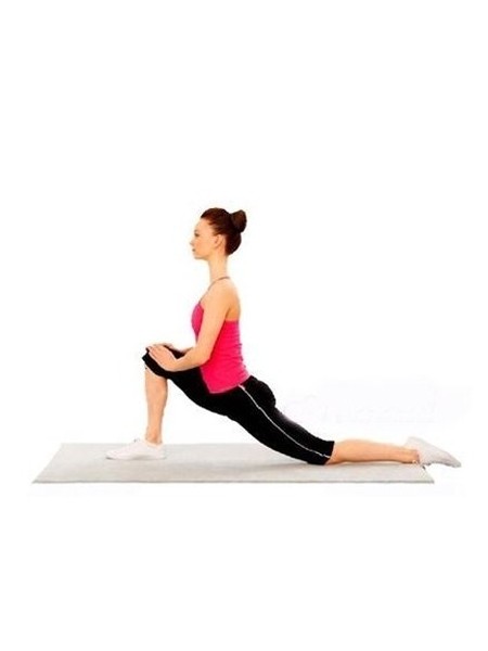 站着右脚向前跨出一大步,膝盖弯曲,左腿置于后方,左小腿紧贴地,大腿面伸直,同时压低臀部,撑直背部,双手扶在右膝盖上,肩膀向后打开,眼睛目视前方。维持15秒后,可换另一只脚重复做。