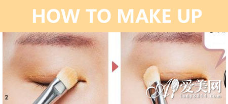 STEP2:选择明媚的橘色眼影如图所示,扫在上眼皮眼头已经眼尾处,不用担心浅色眼影会让眼皮显得厚重,恰当好处的化妆技巧能够打破你的忧虑。