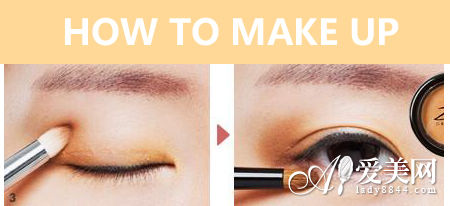 STEP1:首先往眼皮涂抹眼部打底膏,这样可以让妆效更持久,然后用眼影刷蘸取珠光米色眼影涂抹上眼皮,余粉轻扫下眼睑。