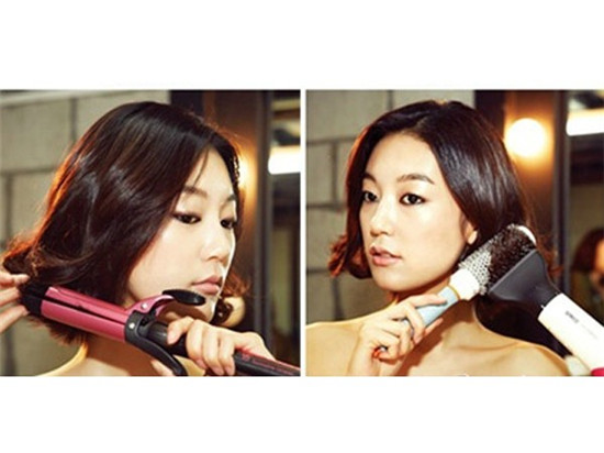 step 2:用圆梳与吹风筒将头发外翘程度巩固一下。