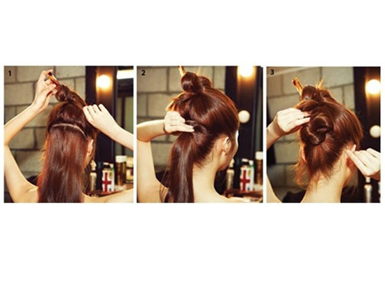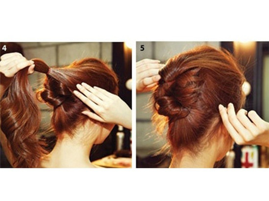 step 3:将马尾扭转盘起,用黑色小发夹固定。