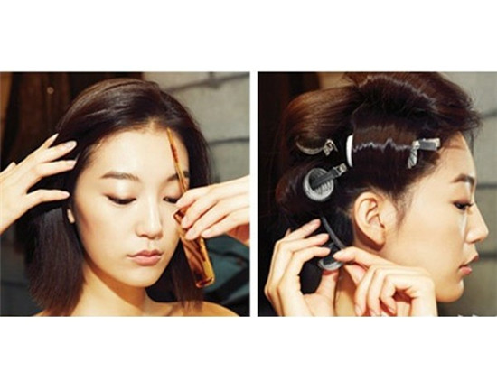 step 2:将头发分成多部分,扭转卷曲用卷发夹固定。