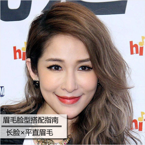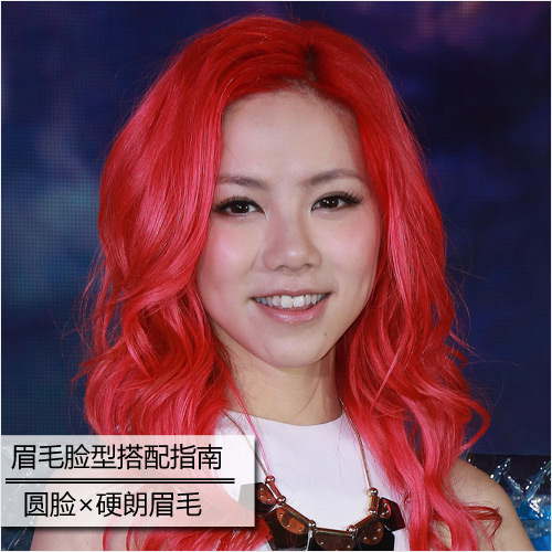 邓紫棋是一个圆脸美女中很好的例子,线条硬朗的眉毛让她的脸的轮廓更加分明。高拱起的眉峰加上短短的眉尾,能够很好的拉长脸形,并且让眼睛更加开阔有神。