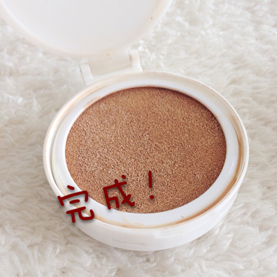 最后放上一块细密的海绵,拍一拍,你独家秘制的气垫BB就完工啦!但要小心,配方不要加的太杂乱,以免过敏。