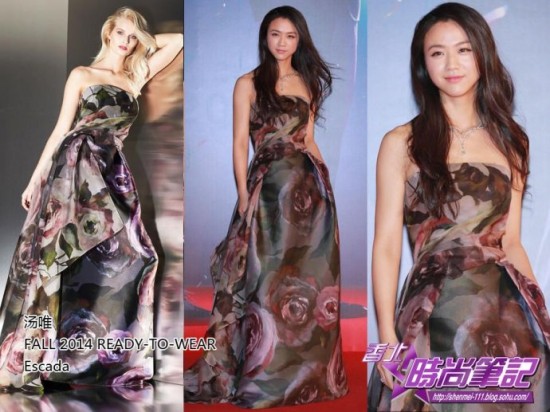 汤唯着爱斯卡达(Escada) 2014秋冬系列暗色调印花连身裙风轻云淡气定神闲,郑秀文身穿罗伯特·卡沃利 (Roberto Cavalli)黑色露背礼服时髦率性,至于影后大热人选章子怡则是以阿玛尼高定 (Giorgio Armani Prive)2014春夏系列加身胸有成竹来露面。究竟谁的表现最佳,看“香北时尚笔记”的独家盘点。