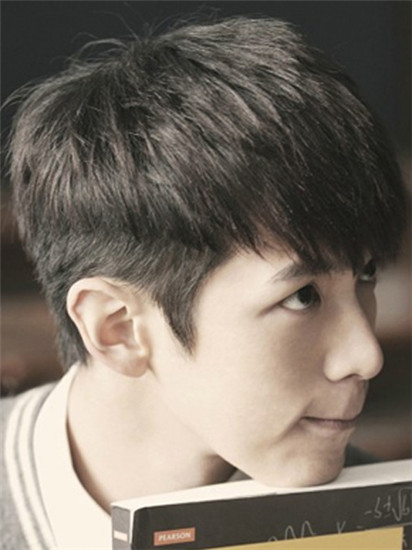 侧面看修剪的非常清爽的短发,鬓角清晰纹路感十足,黑色的柔亮发丝,刘海遮住额头,青春气息尽显。