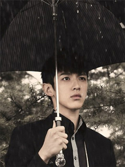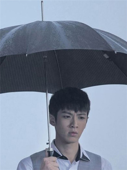 帅气的校园男生短发,黑色的衬衫西装多了一些沉稳感,表情悲伤,手持雨伞呈现出感伤的风格。