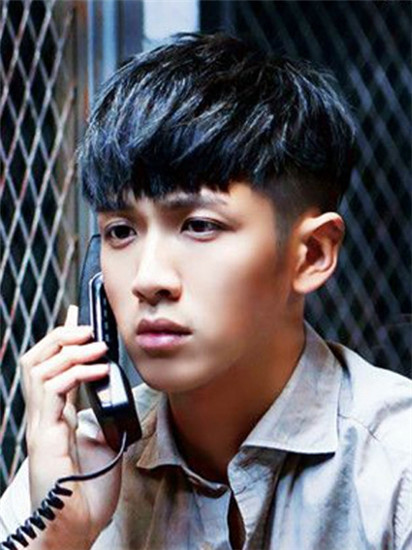 看这款带点烫发效果的利落短发型,非常潮流有型,而三角形修剪的刘海造型,很好的修饰长脸型显得阳光俊朗。