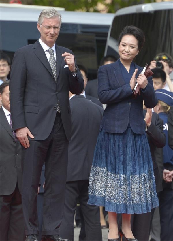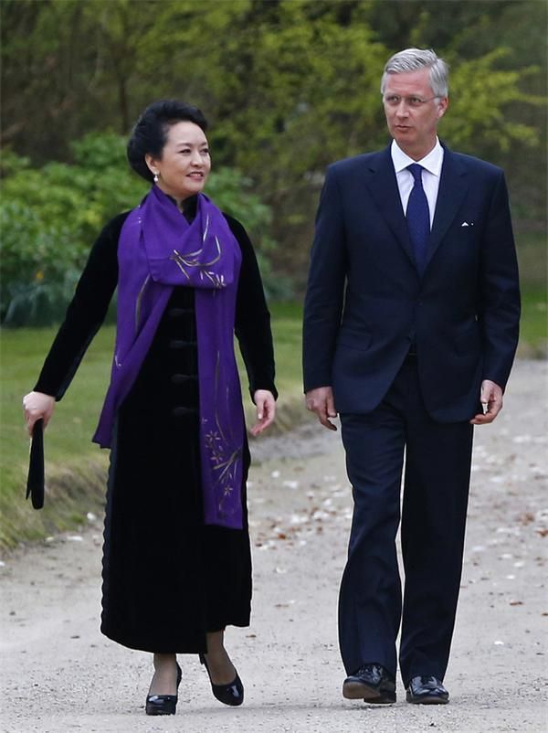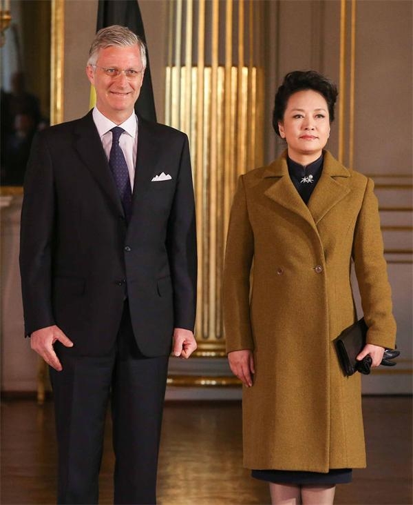 图为比利时布鲁日,菲利普国王陪同彭丽媛参观。