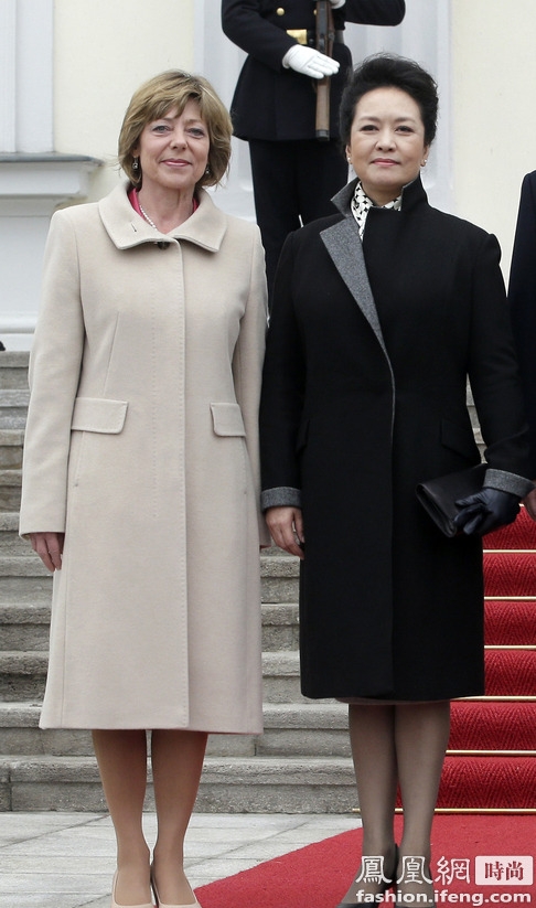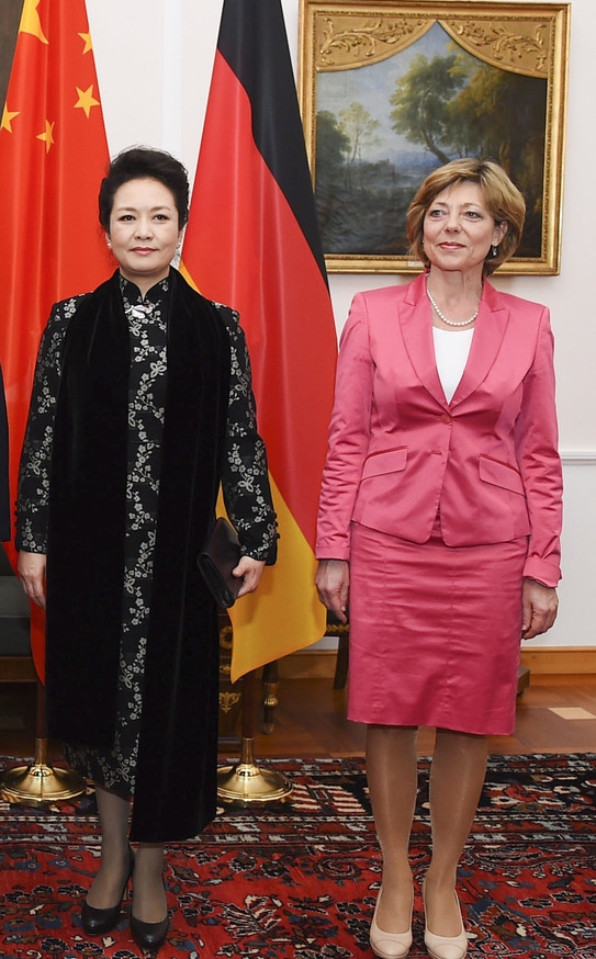 德国第一女友夏迪特迎接来访的彭丽媛。