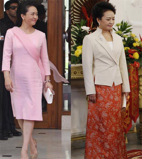 彭丽媛出访印度(左),彭丽媛在印尼雅加达(右).