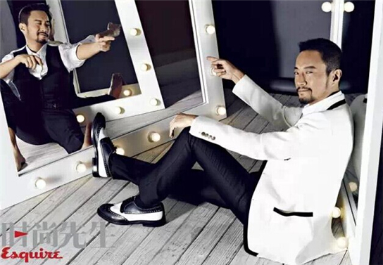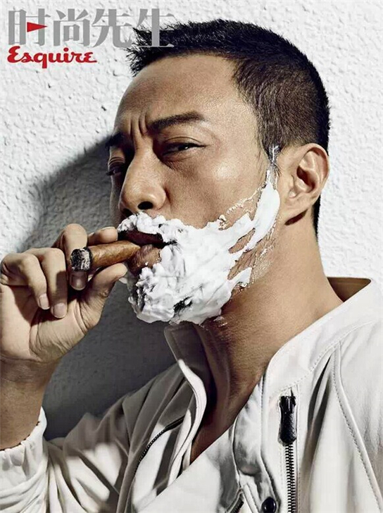 张涵予并没有电影里看到的那么魁梧,他穿了一身黑色衣服,身材瘦削,皮肤黝黑,看上去比这个年龄的人要年轻几岁。与其他艺人不同,张涵予并没有浩浩荡荡地带来一大队的工作人员,始终跟在他身边的只有经纪人和宣传。他也不喜欢化妆,也对,一切程式化的修饰对于纯爷们儿都是多余的,于是,他脸上没什么修饰地就大大方方地出镜了。拍摄间隙,我们问了这个女人们眼中的时尚先生,到底什么样的男人在他眼里才算是时尚先生,他说了这么一句意味深长的话:“首先骨子里头应该是个大男人,然后在外在加入一些个人风格化的修饰,就够了。”