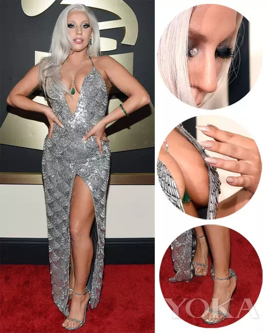 Lady Gaga身穿鱼鳞深开叉礼服,长长的杀人甲惊艳!