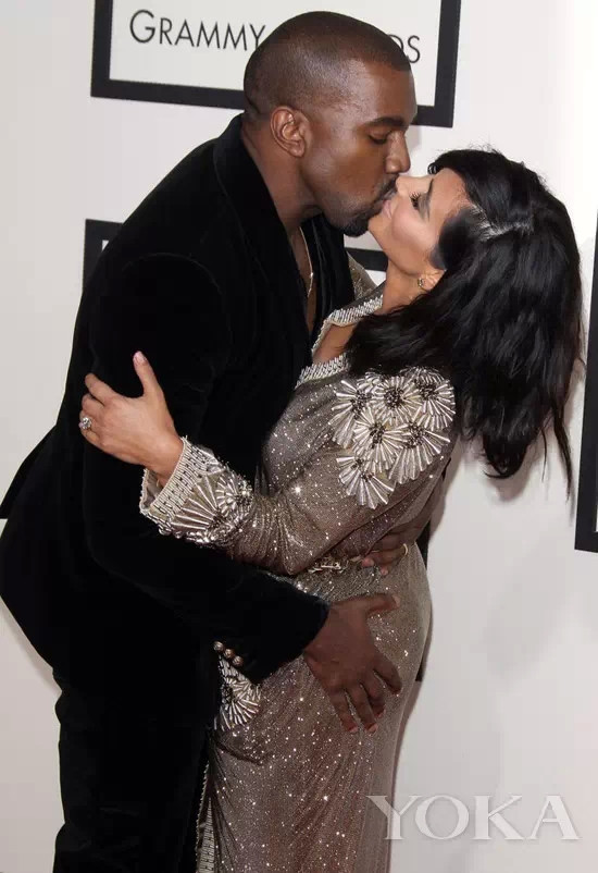 坎耶·韦斯特激吻金·卡戴珊,夫妻俩的PP都不小呢——
