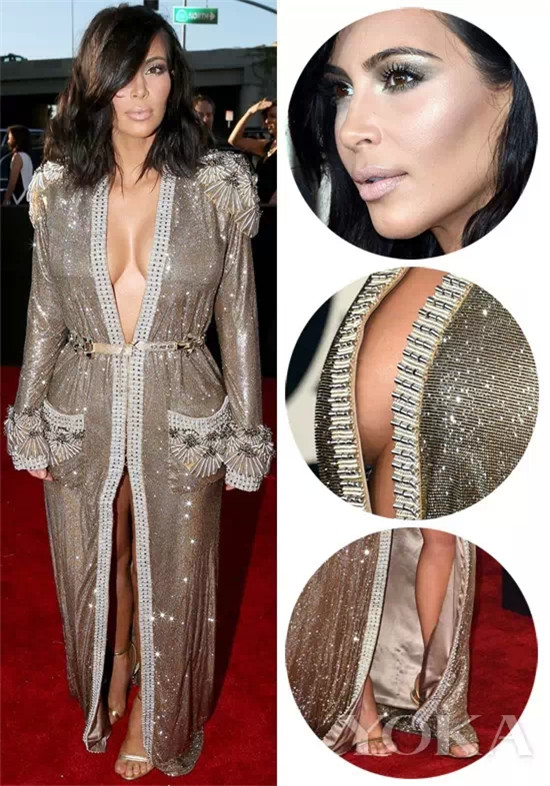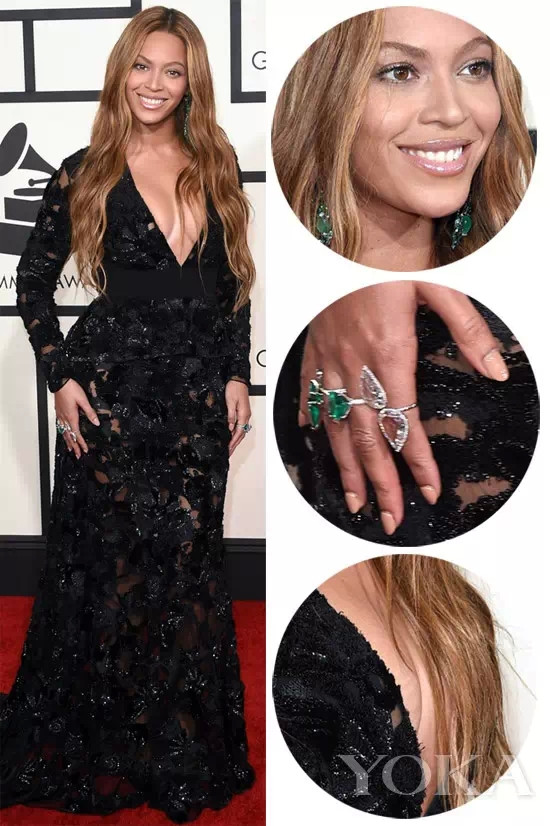 碧昂斯身穿镂空深V搭配金色裸妆高贵女神范儿