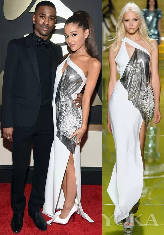 Ariana Grande身穿Versace 2014春夏拼接长裙