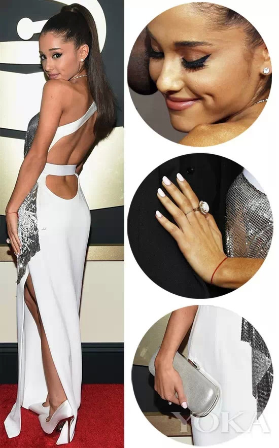 Ariana Grande妩媚眼线和嫩粉美甲透着少女气息——