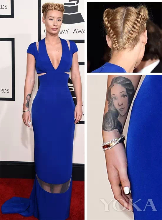 Iggy Azalea身穿Giorgio Armani电光蓝长裙,鸟巢盘发也是醉了!