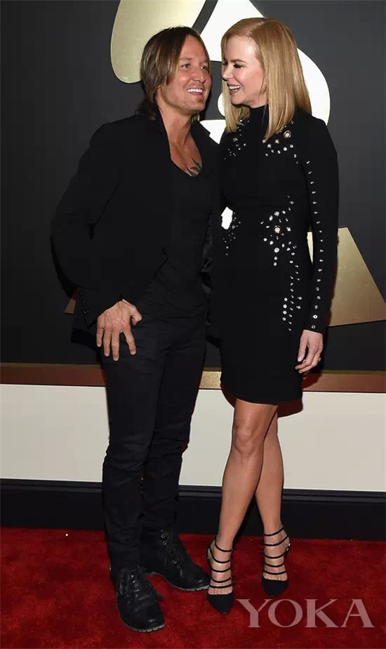 妮可·基德曼身穿Thierry Mugler镂空裙与老公恩爱亮相