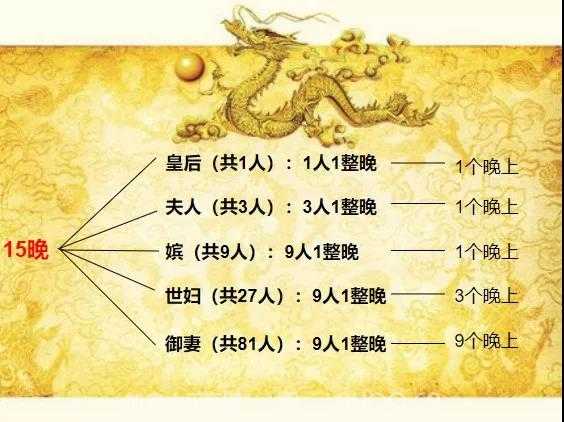 也就是说,皇上的15个晚上是这样分配的: