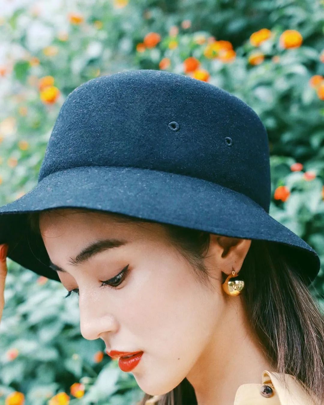 平时只需要简单打个底妆,用红茶色眼影营造复古的感觉,加上野生眉和自然的修容,仿佛就开了时光滤镜。