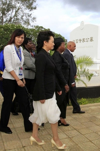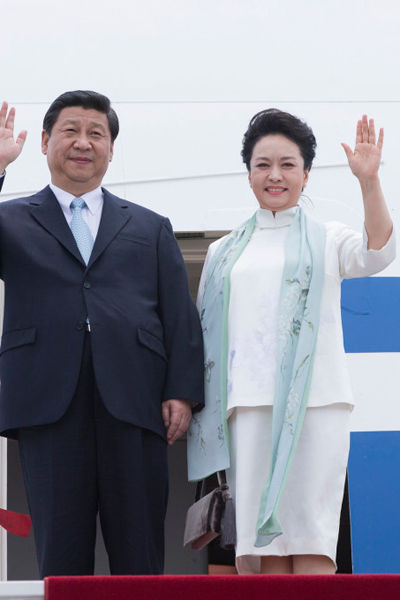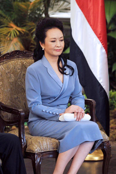 黑色的连衣裙搭配搭配中国风的西装外套,作为“第一夫人”彭丽媛每次现身都将充满中国风的服饰演绎得端庄华丽,高贵逼人的气质不得不让人尊敬。