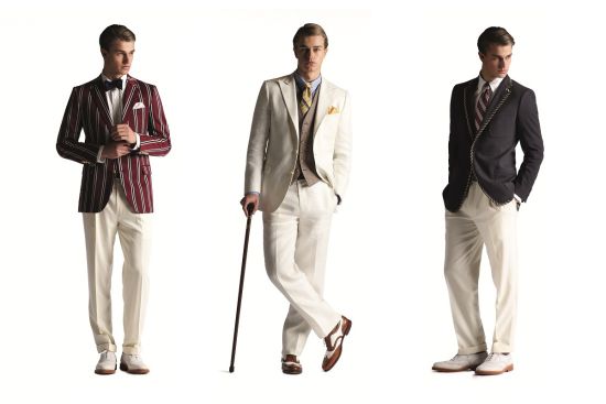从布克兄弟推出的18款领带中可以看出本系列的设计十分大胆,避免了与今年春季主流的淡雅风格男装发生碰撞。此外,系列中的诸多服饰还挑战了当今男装保守的季节性概念,如人字形图案的马甲等。该系列还推出了与影片中盖茨比同款的榉木步行手杖,这也是20年代许多热爱登高的年轻男士的必备单品。