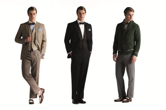 系列中还包括一件配套马甲。这些马甲和领结是对“盖茨比时代”上层阶级雅致活泼的男装品位的一种敬意。而系列中的五款精致礼服衬衫(其中一款为无尾礼服衬衫),则体现了20年代男士衬衫领丰富而繁多的花样,如领针式、圆角“高尔夫”式等。