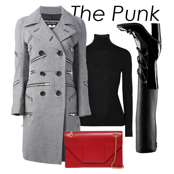Junya Watanabe风衣;Lanvin毛衣;Chanel高跟靴;Saint Laurent包