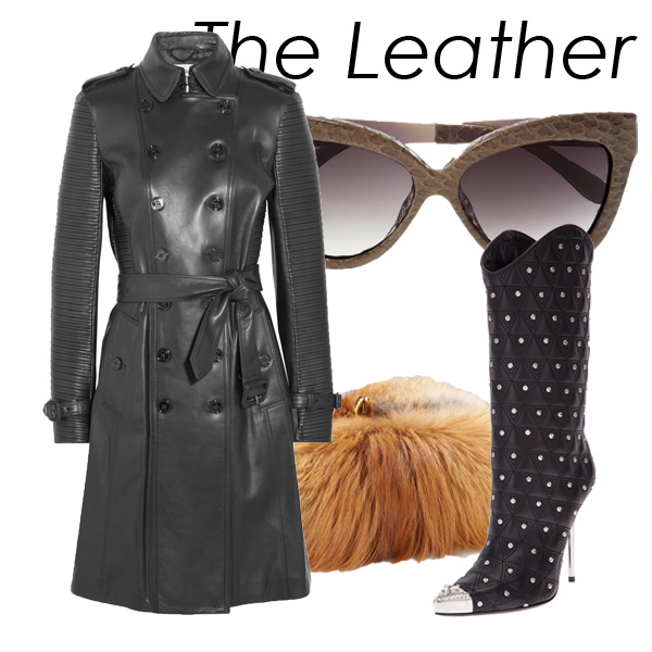 Burberry风衣;Linda Farrow墨镜;Christian Louboutin手拿包;Versace高跟靴