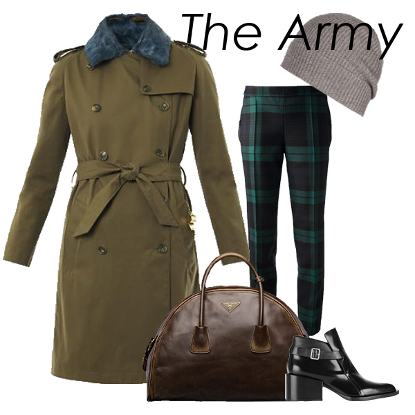 Sophie Hulme风衣;All Saints帽;Moschino长裤;Prada手拎包;Jil Sander短靴