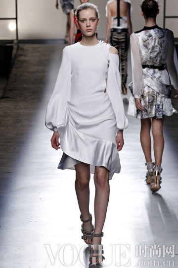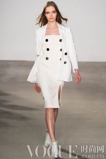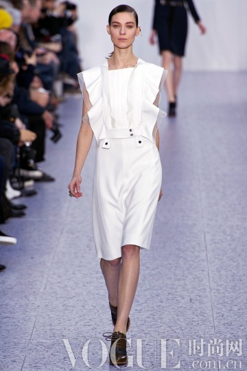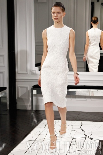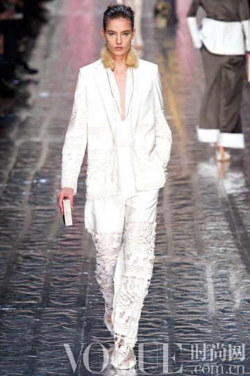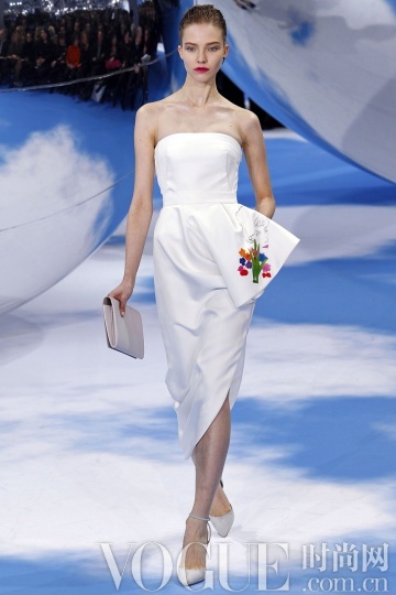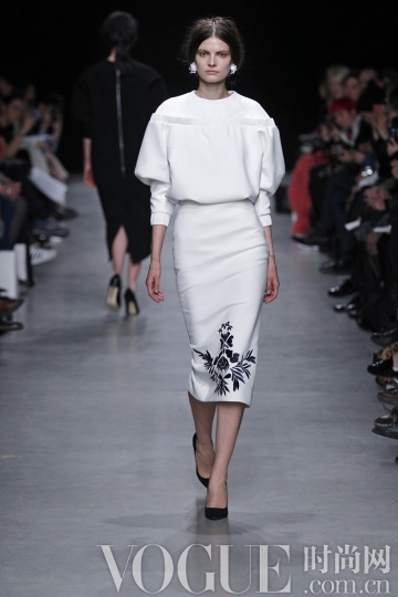 整身白色造型在秋冬季不必过多肌肤的裸露,就能散发高贵的冷艳气息。而本季除了全纯白造型,细节花样的点缀也更多突显,如Dior 秀场的一袭抹胸白裙上添加了多彩花卉;Masha Ma 的白色铅笔裙下摆的黑色刺绣……