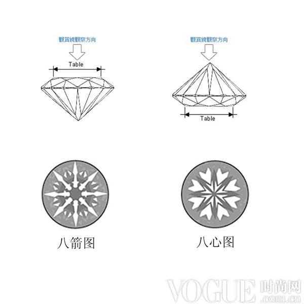 所以八心八箭不是一种特殊切工,只是普通圆钻的切工等级达到一定标准所呈现出的图案效果。