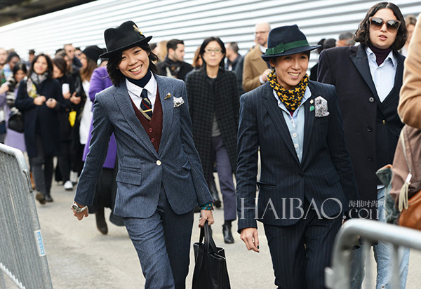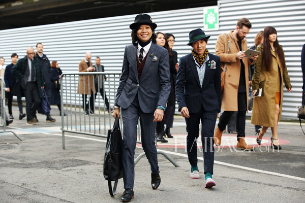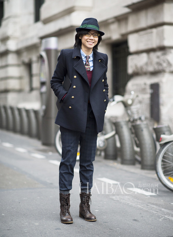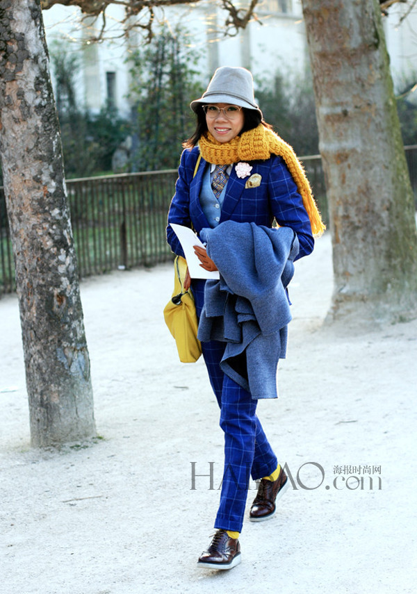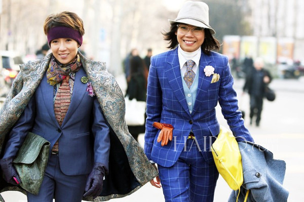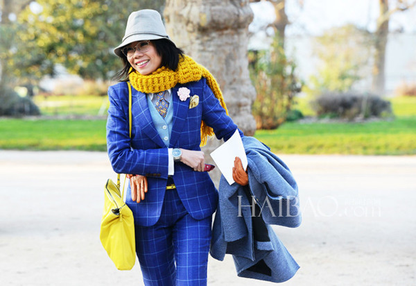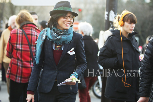 Janie Cai的穿衣风格可以说是业内热衷男装女穿的几位女性中最别具一格的,在她身上不一定有考究的西装马甲衬衫三件套,也不一定有昂贵的手表、皮鞋,就算是柔软的亚麻外套、休闲的乐福鞋也能够被Janie Cai穿的让人“心神荡漾”。Janie Cai打破了男装只局限于黑白灰等基本色的传统印象,靓丽的配色总是能够在第一眼就十分抓人,嫩粉、明黄等很难驾驭的颜色在Janie的手中玩转自如。配饰方面Janie Cai同样个性十足,花朵胸针、复古折扇,甚至还有“红领巾”,无不充满时髦的雅痞气息。报友们喜不喜欢这个笑容爽朗的女生?马上翻翻看今天的街拍告诉编编吧!