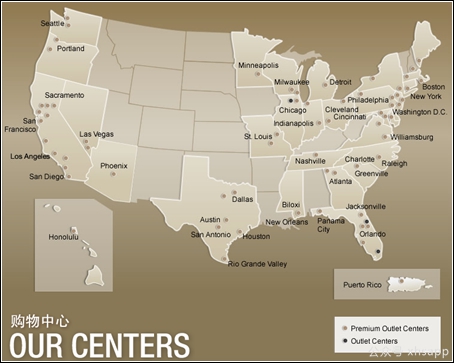 Premium Outlets是全美最大的outlets连锁。汇集众多高端品牌,户外环境设计独特,每天打折高达25%至65%。覆盖了美国东西海岸主要城市的近郊,可以在其官方网站上搜索具体每一家购物中心的地址、营业时间、品牌和店内地图等相关信息。