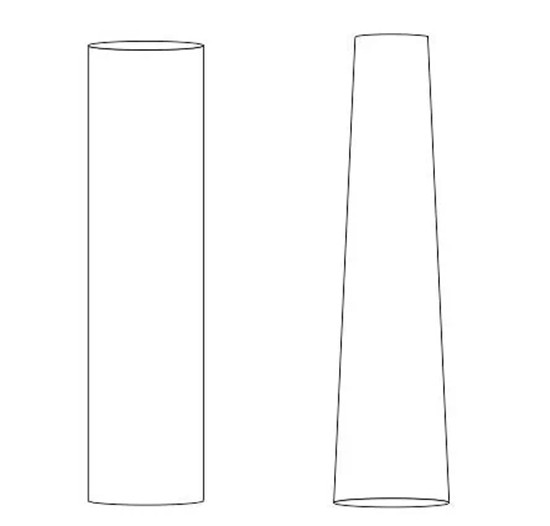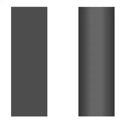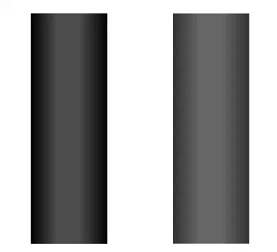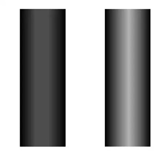 上图,两组矩形都使用了渐变填充,左边深色圆柱形,不只是感觉半径更小,而且会感觉更修长笔直一些。