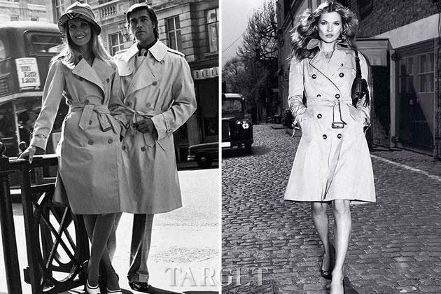 名模 Kate Moss 和 Cara Delevingne 等都演绎过这份英伦味道,近年来,不少大胆颜色和用料都出现在 Burberry 的风衣设计中。随着硝烟的消散,战壕雨衣(Trench Coat)退下战场,转化成潇洒不羁的时装。