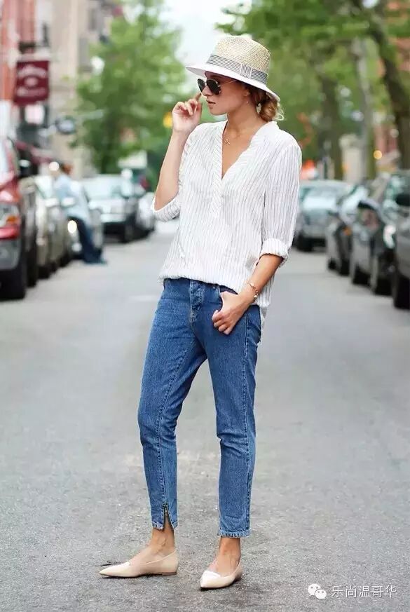 不同于平顶草帽、大檐草帽的硬质宽边,渔夫草帽下垂的帽檐看起来更加柔软而无害,非常适合甜美的造型。