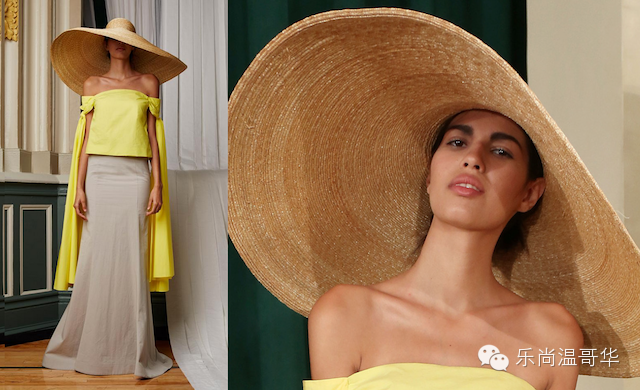 这一季,J.W. Andersen 在新系列中让模特带上了夸张的黑色宽檐帽,看起来古典又前卫;而 Rosie Assoulin 的 2015 春夏直接使用了宽檐草帽,搭配设计中飘逸的裙装。