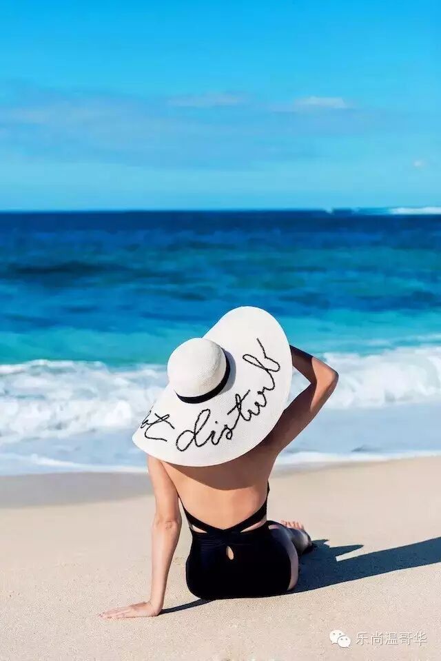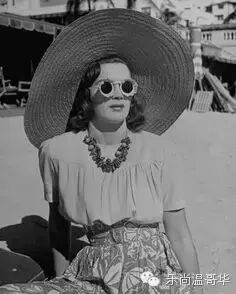 宽檐草帽和圆形太阳镜是 40 年代海滩标配