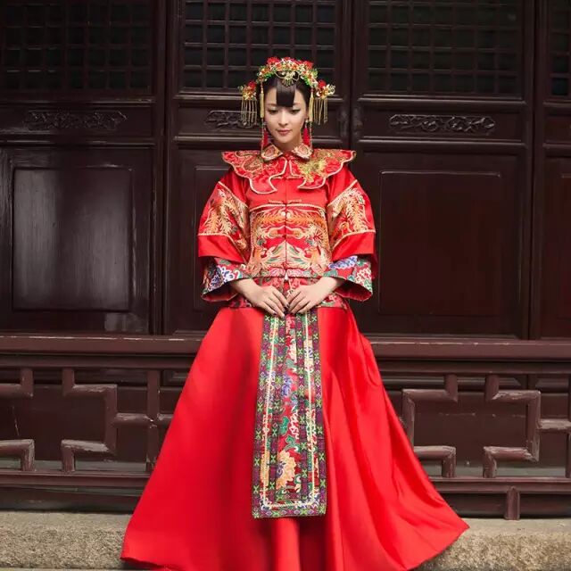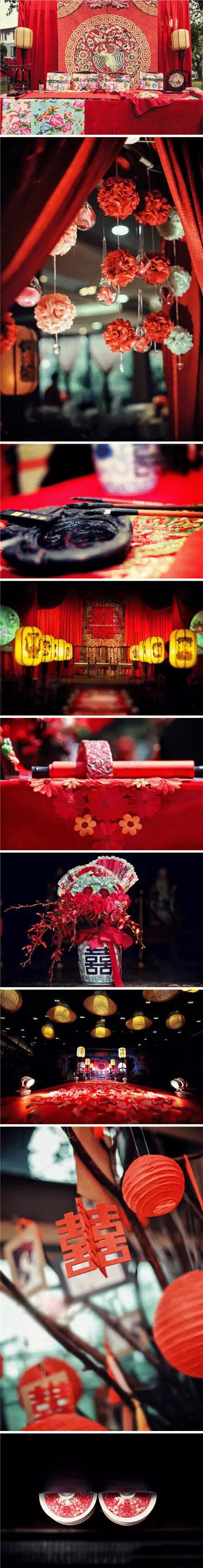 虽然近年西式洁白的婚纱是婚礼礼服的主流,但身穿凤冠霞帔的中式婚礼,成了现代人的新”时尚”。而中国人自古以红为喜,中式婚礼大红的基调,更显喜庆。