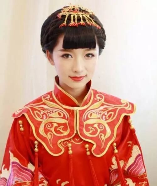 以独特的“中国娃娃”刘海突出中式特点,编发全盘让发型看起来大气高雅。