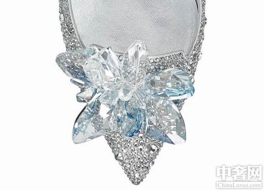 无可厚非,这双鞋子的灵感来自于迪士尼真人电影《灰姑娘》的那双著名的玻璃鞋。设计师用水钻打造出璀璨辉煌的效果,鞋头的水晶花朵在光线下剔透明亮。