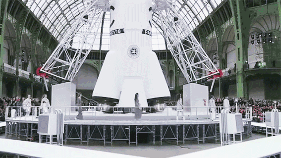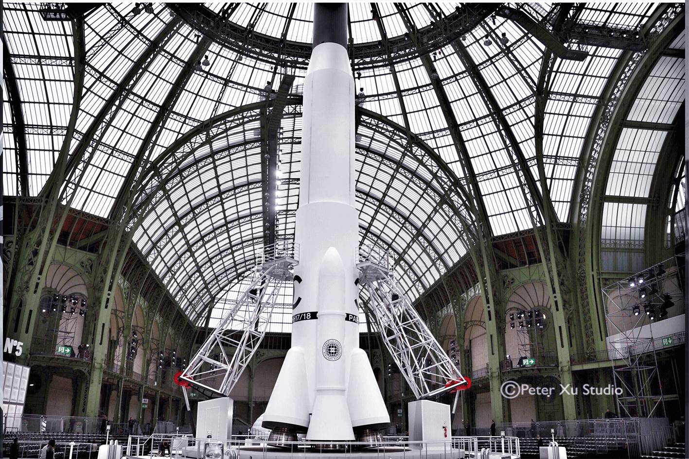 CHANEL你可以上天了!在继把巴黎大皇宫改造成机场、赌场之后,KARL LAGERFELD有了更远大计划——飞出大气层,飞向外太空。大皇宫变身香奈儿五号火箭发射地空中心,还相当豪气地搬来了一架“火箭”!别管你是主编大女王,所有人进场都必须抬头仰望行注目礼!