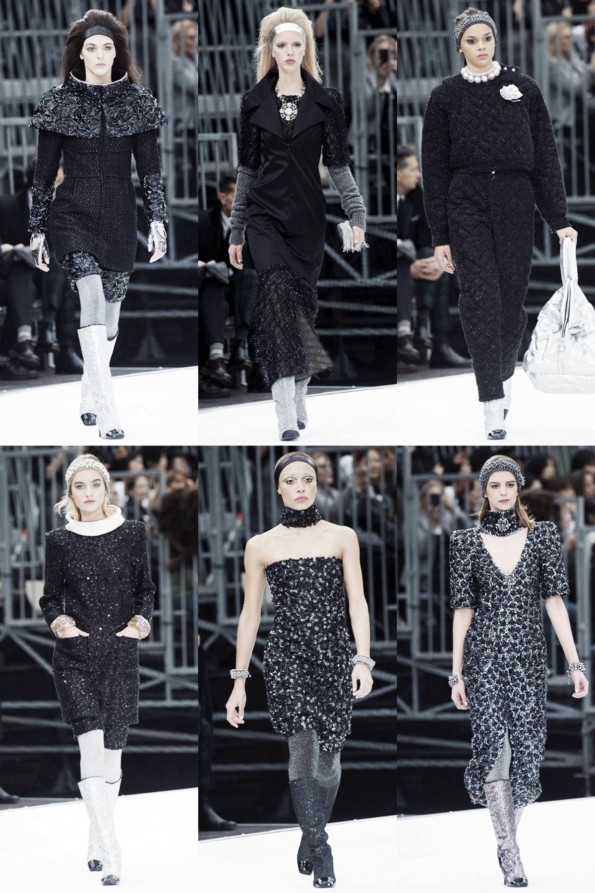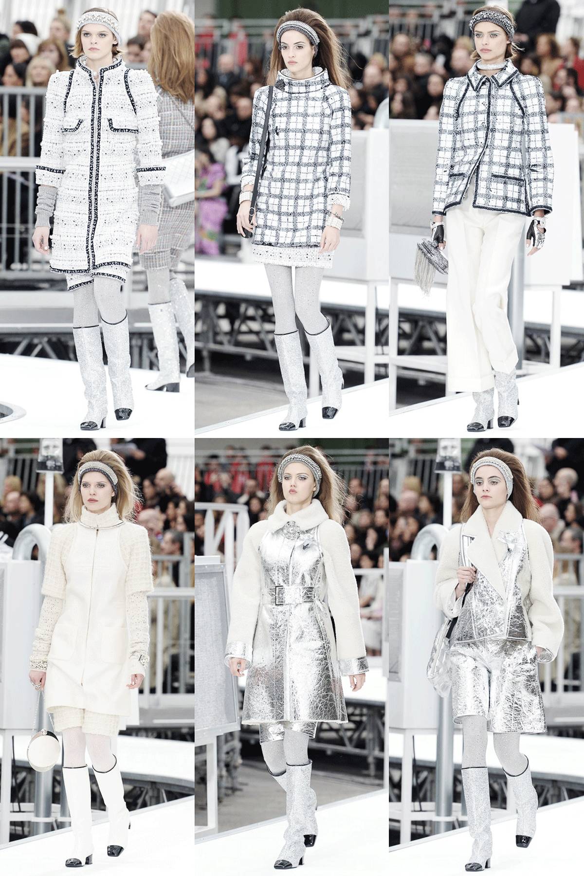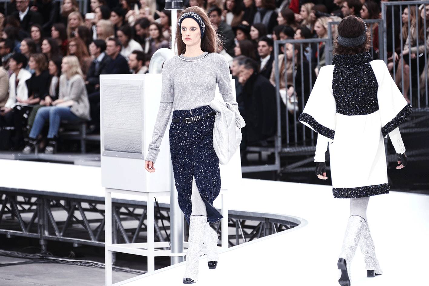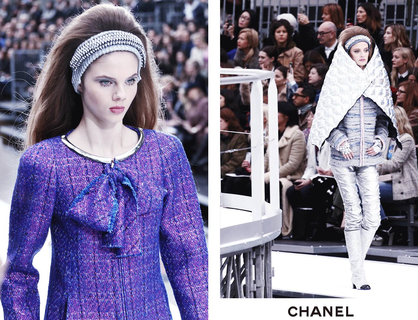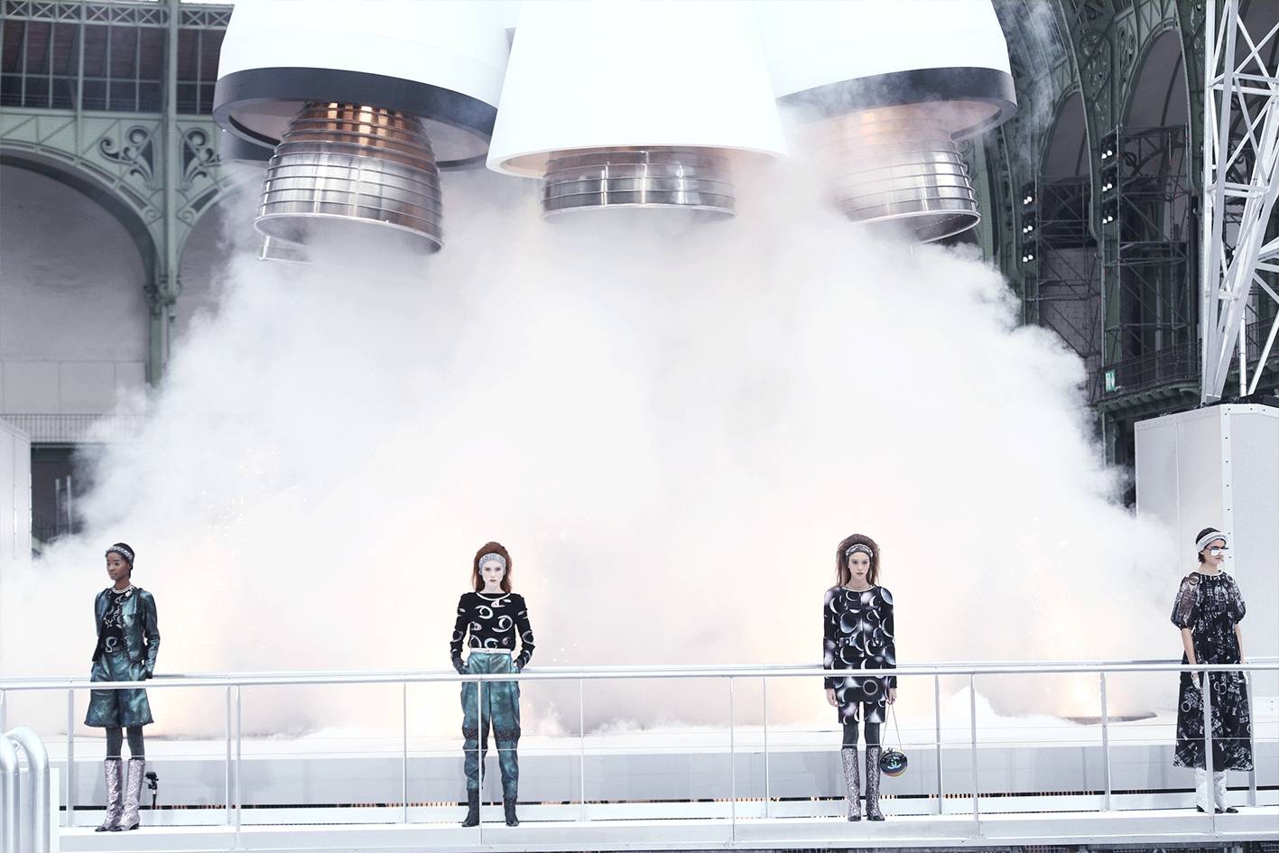 仰望着秀场中央杵着的35高的火箭,就知道老佛爷这一季又到外太空“搜刮”灵感去啦。无论是KARL LAGERFELD还是COCO CHANEL都对天外的那个世界有着美好的想象,CHANEL本人就是一枚星座控,这一季璀璨如星辰的发带正是从星座中汲取的灵感。老佛爷除了迷恋外太空还是货真价实的技术控,2017春夏系列玩的是机器人,2013春夏系列还玩过太阳能。所以这一季文科生与理科生同体,既有星空的诗意浪漫,又有科技的冷静严谨。